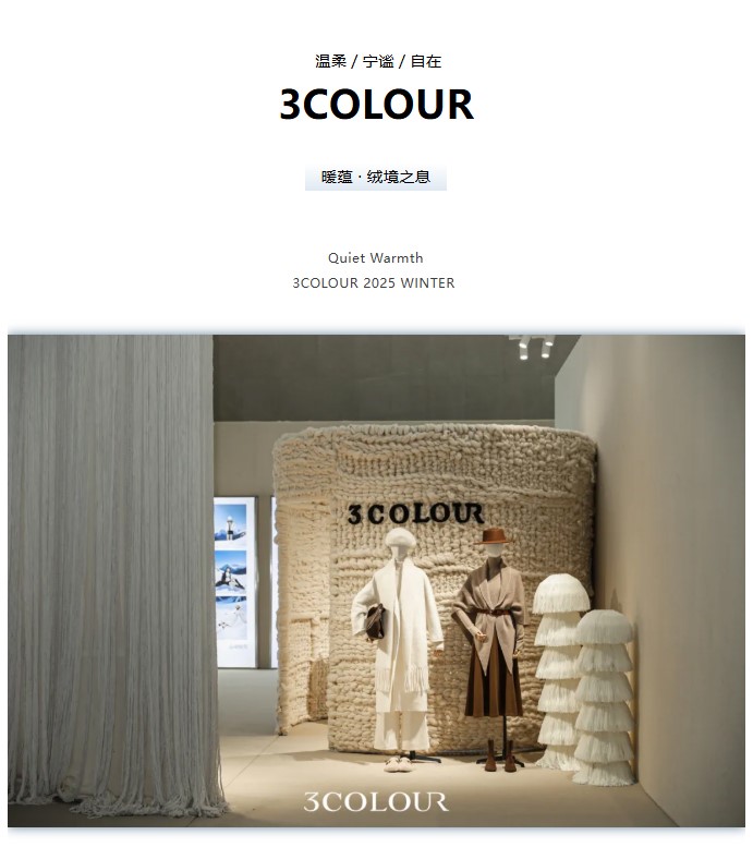 3COLOUR 2025 WINTER「暖蘊 · 絨境之息」,于冬境低語(yǔ),以輕柔韻律,傳遞靜謐的溫暖,織就一場(chǎng)無(wú)聲的暖意敘事。