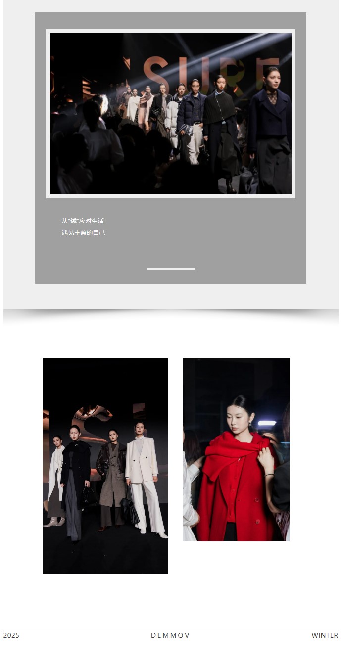 暖蘊織就,絨境無(wú)聲。溯源時(shí)裝的本心,從纖絨到成衣,由觸感至心境,構筑都市智識女性身心與外在的親密對話(huà)。
